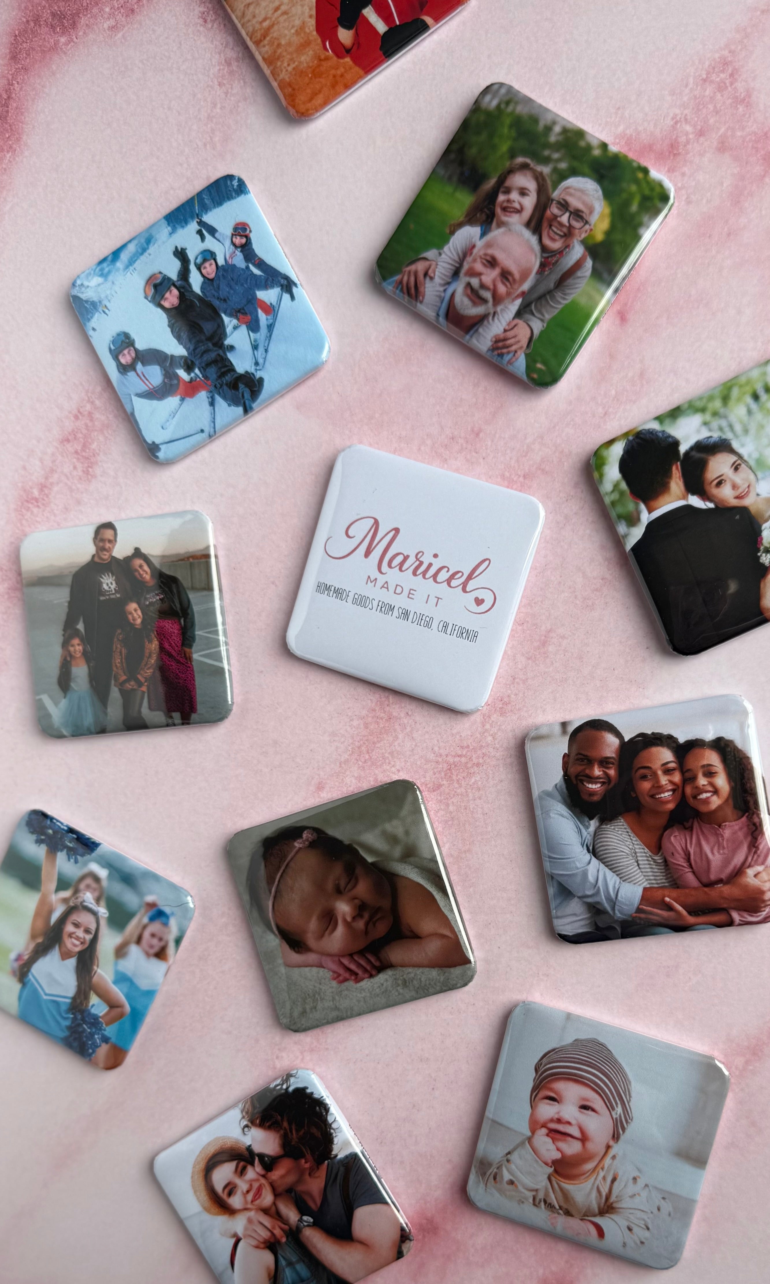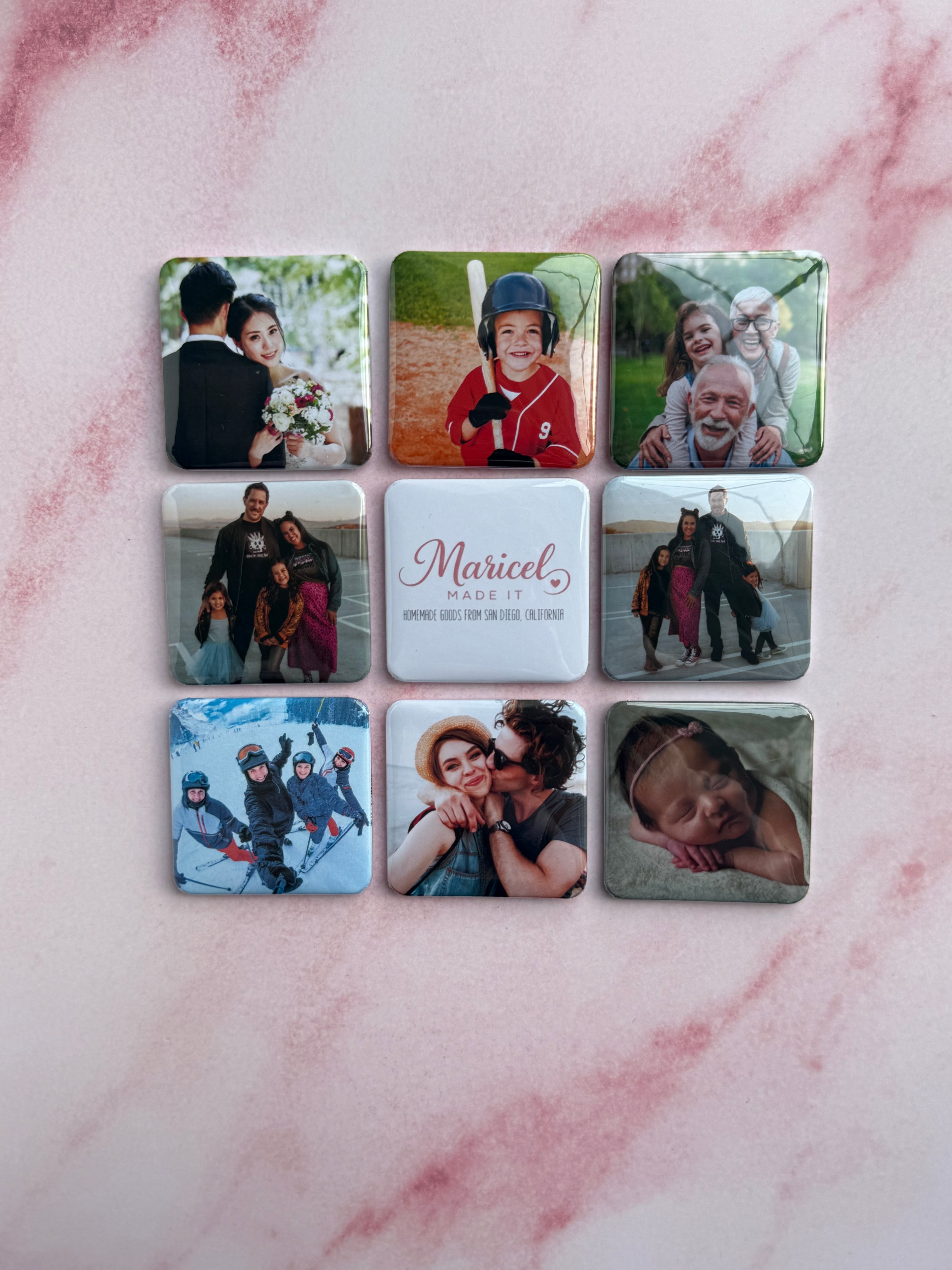 Transform your favorite memories into instant décor with these charming 2x2 custom photo magnets. Perfect for refrigerators, lockers, or any magnetic surface. They let you showcase your most treasured moments in a fun, compact format. Simply upload your photo, and we'll print it on a durable magnet that's ready to brighten up your space. Great for gifts, personalized collections, or keeping loved ones close wherever you go!